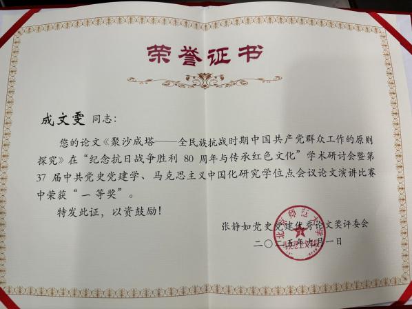 公司硕士研究生成文雯受邀参加“纪念抗日战争胜利80周年与传承红色文化”学术研讨会暨第37届中共党史党建学、马克思主义中国化研究学位点会议会议