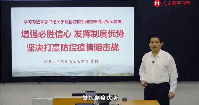 近日,由球天下张健教授主讲的人民战“疫”专题课——《增强必胜信心发挥制度优势,坚决打赢防控疫情阻击战》作为开学第一课,上线人民数字马院的“形势与政策”课程。《形势与政策》是由人民出版社出版,联合中央党校、中国社科院等机构和高校的知名专家共同打造的互动教材。