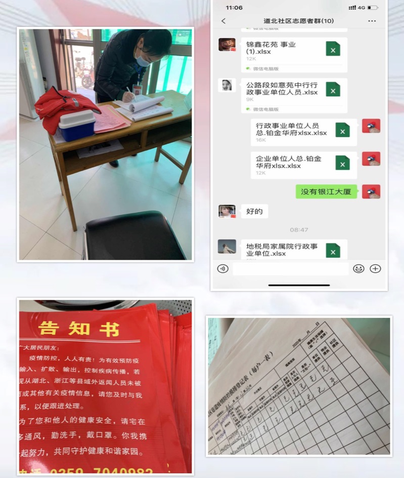 我是2019级博士生郭鑫,山西省运城市人。作为一名青年,为了能贡献自己的一点绵薄之力。疫情防控期间,我深入基层,从2月8日起自愿加入道北社区的志愿者队伍,共统计疫情防控摸排登记表800余户,电话摸排500余户,共上门摸查约300余户,并询问工作单位,有无从外地回来、是否有发热、干咳、乏力、呼吸困难等症状,是否与武汉、疑似、确诊人员接触,是否外出、是否隔离等相关信息。并告知疫情期间,不要外出、减少外出,宅在家,勤洗手,戴口罩等相关防疫知识,发放防疫知识手册。
