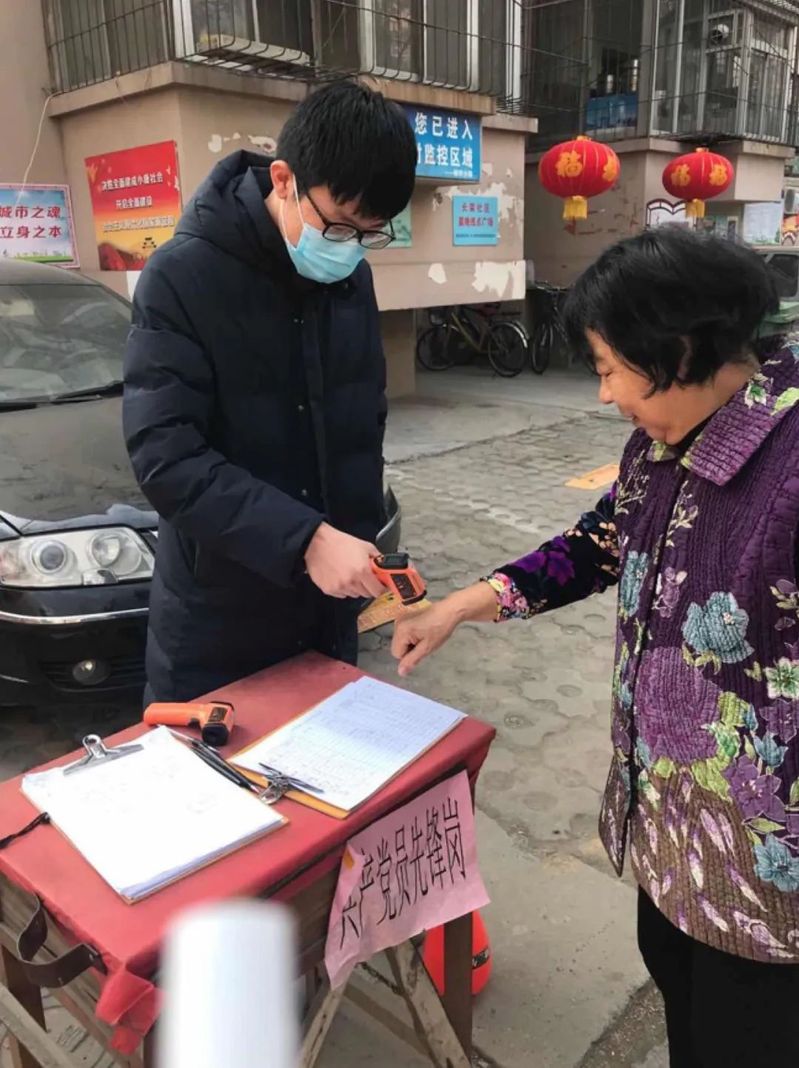 2018级硕士研究生郝津源是天津市第三期“青马工程”和球天下体育第十二期“青马工程”培训班的学员,他在河北省石家庄市的所属社区报到,负责社区人员体温检测和出入登记工作,并同社会工作人员一同入户宣传。居民们从最初的不理解到后来主动配合,大家的工作显露成效。